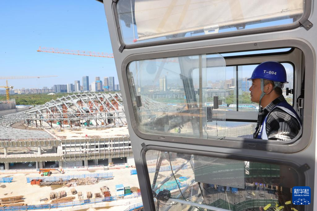 10月3日,中建三局的建设者在浙江杭州余杭国际体育中心项目施工。