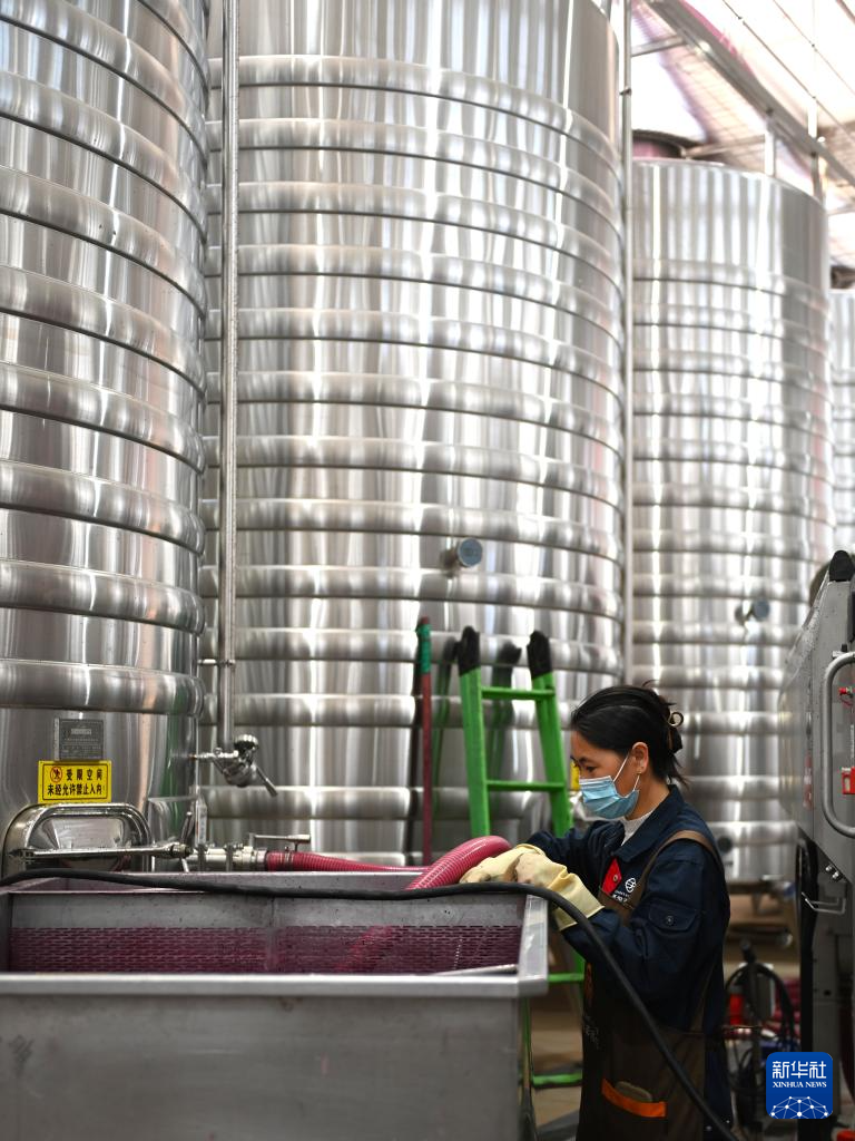 10月4日,技术人员在图兰朵葡萄酒小镇的酿造车间工作。