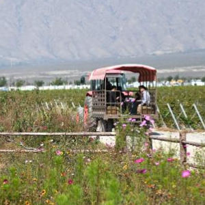 10月4日,游客在图兰朵葡萄酒小镇观赏葡萄种植园。