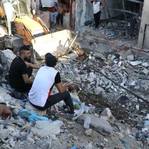 10月4日,在约旦河西岸北部图勒凯尔姆难民营,当地民众查看以军空袭后的废墟。