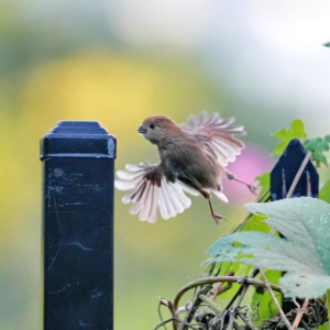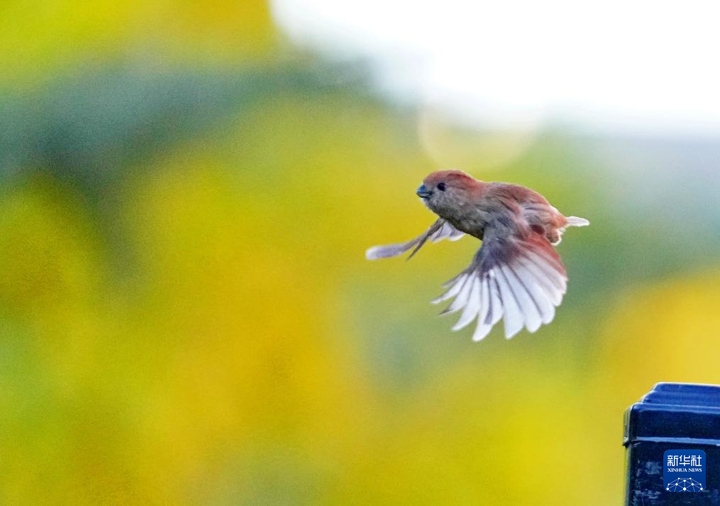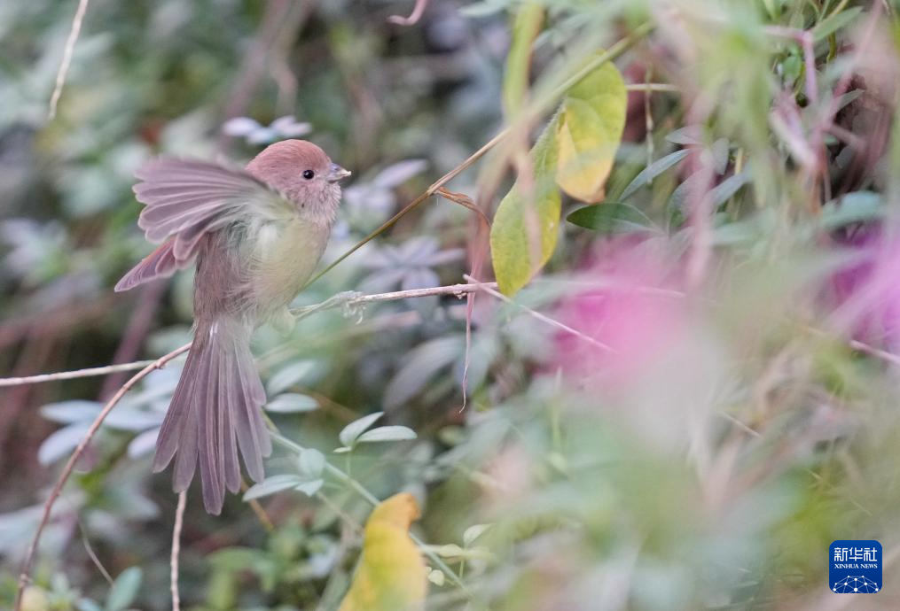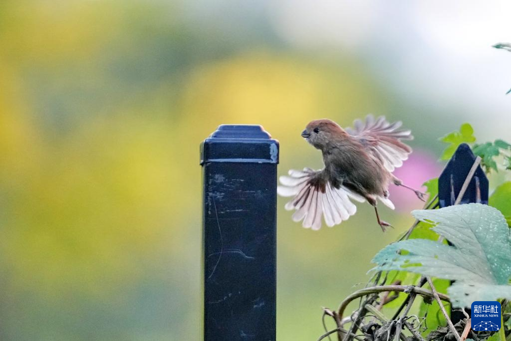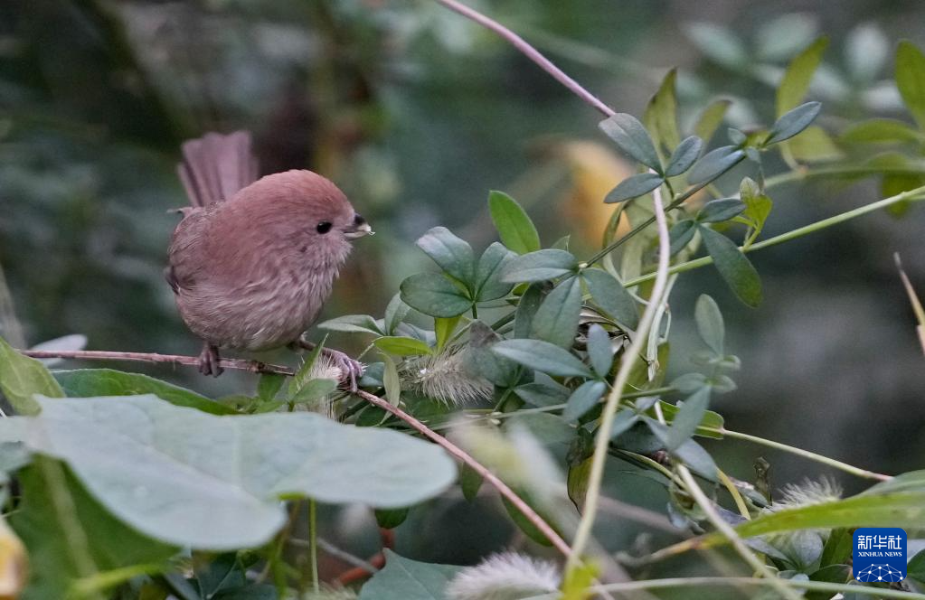 在济南市市中区一处居民小区拍摄的棕头鸦雀(10月4日摄)。