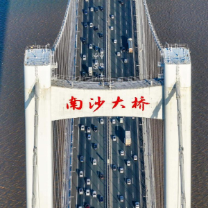 10月2日拍摄的南沙大桥(无人机照片)。国庆期间,粤港澳大湾区环珠江口100公里“黄金内湾”江面船舶来来往往,跨江跨海通道车流滚滚,一派繁忙景象。