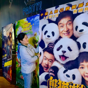 10月7日,工作人员在江苏省南通市一家影院整理电影海报。