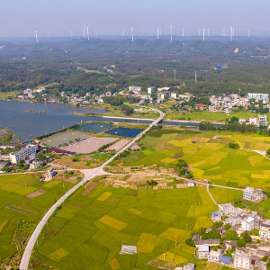 金秋时节,乡间农田与河流、群山、村落相互映衬,一步一景,美不胜收。