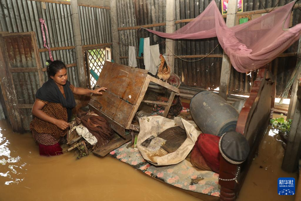 10月7日,在孟加拉国迈门辛,房屋被洪水浸泡。