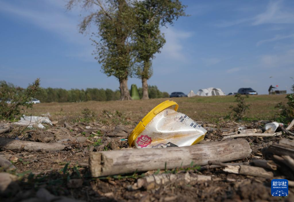 在辽宁沈阳一处露营地,垃圾被随意丢弃(10月4日摄)。