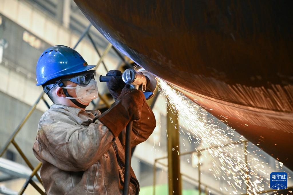 10月8日,工人在哈电集团哈尔滨锅炉厂有限责任公司重型容器分厂内作业。