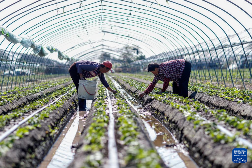 10月8日,农民在江苏省兴化市陈堡镇曹黄村草莓大棚内除草。