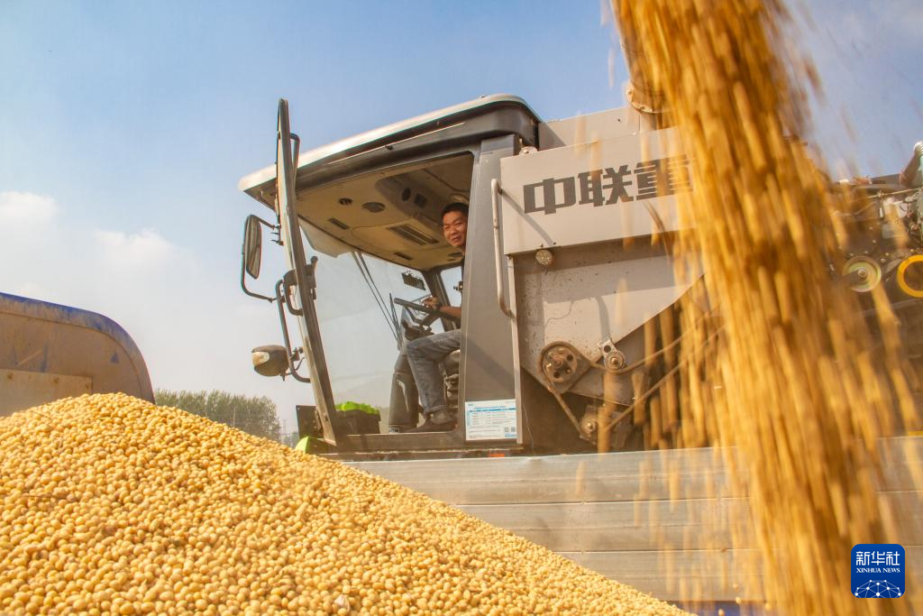 10月8日,河南省商丘市夏邑县会亭镇崔楼村村民在收获大豆。