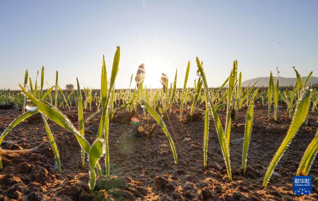 10月8日,河北省遵化市东新庄镇后毛庄村农民在田间管护冬小麦幼苗。