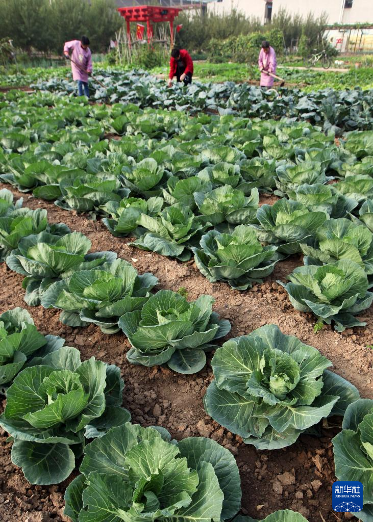 10月8日,在河南省焦作市博爱县鸿昌街道九街社区城市菜园里,菜农在管理蔬菜。