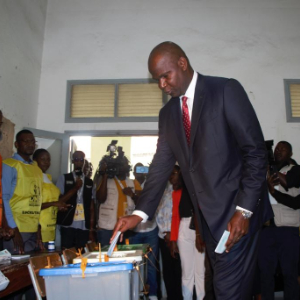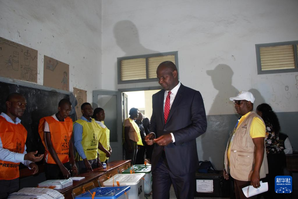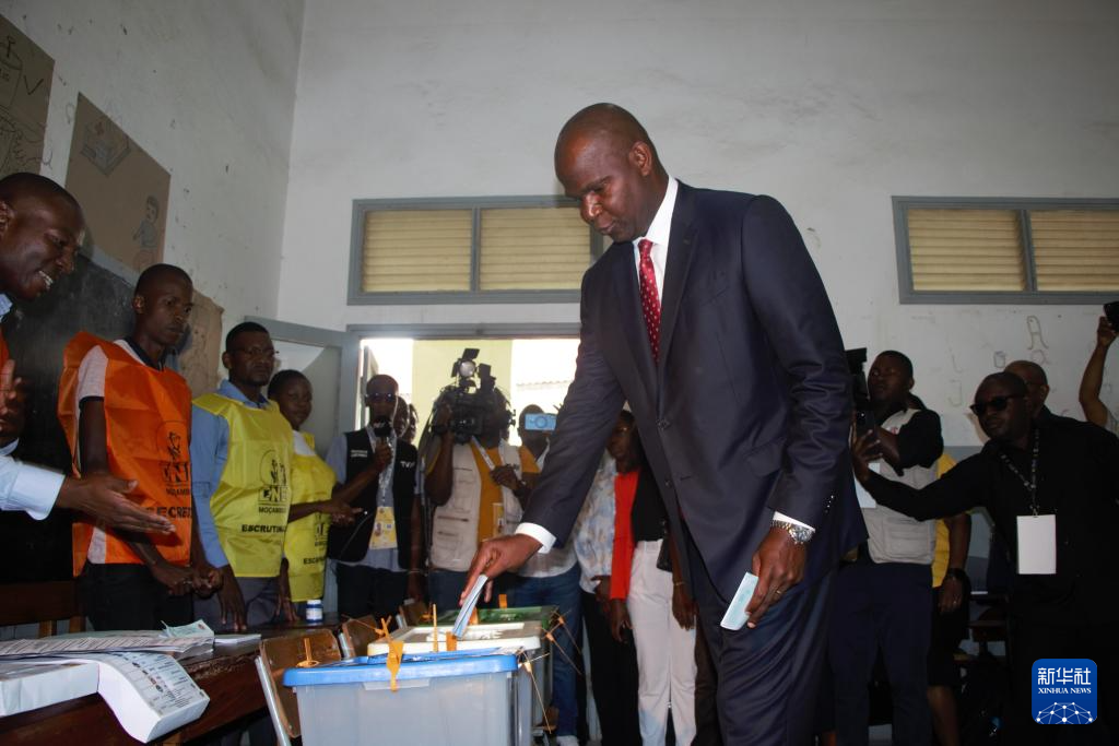10月9日,莫桑比克执政党莫桑比克解放阵线党总统候选人丹尼尔·查波在莫南部伊尼扬巴内市一所小学的投票点参加投票。