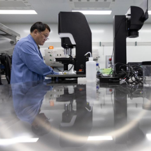 9月24日,在月球样品实验室,中国科学院国家天文台研究员、嫦娥六号任务工程副总设计师李春来(右)和科研人员利用扫描电镜探测嫦娥六号月球样品的结构和矿物成分。
