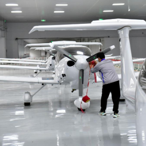 10月9日,在滨州大高通用机场, 大高国际飞行学院的机务人员将飞机出库。