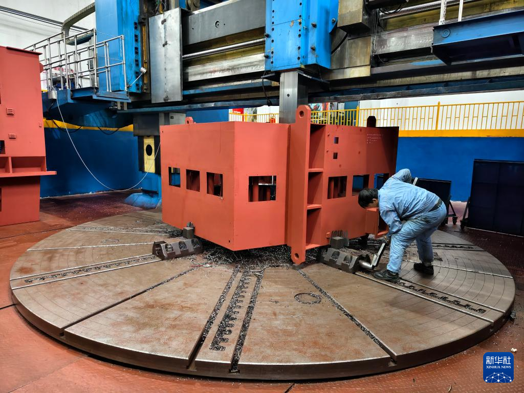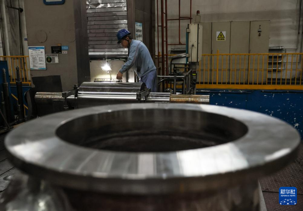 10月10日,哈电集团佳木斯电机股份有限公司工人给同步机进行粗车作业。该公司持续在数字化、智能化建设与新产品研发和科技创新上加大力度,全面推进企业数字化转型。