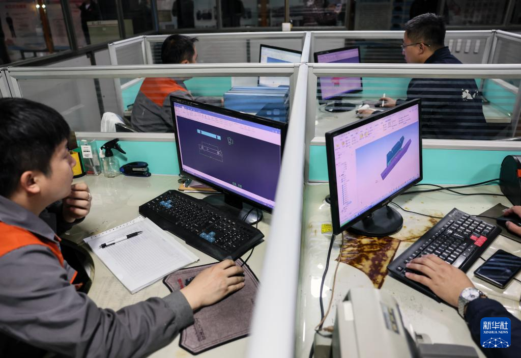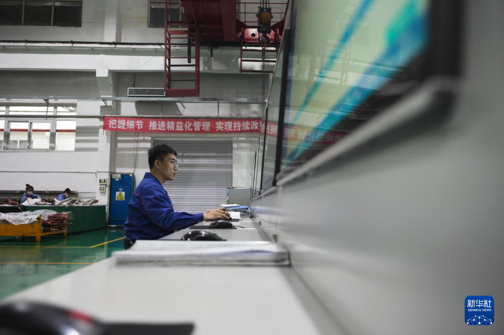 10月10日,哈电集团佳木斯电机股份有限公司工人在电脑前认真工作。该公司持续在数字化、智能化建设与新产品研发和科技创新上加大力度,全面推进企业数字化转型。