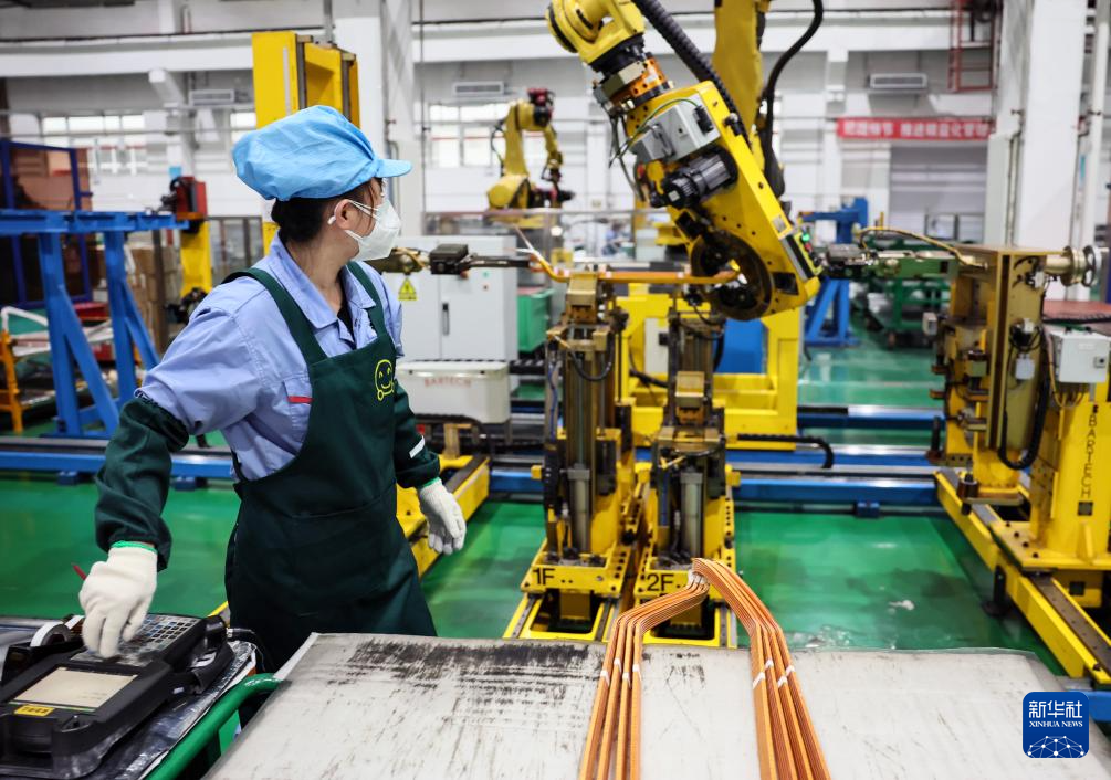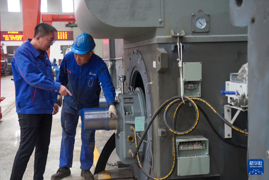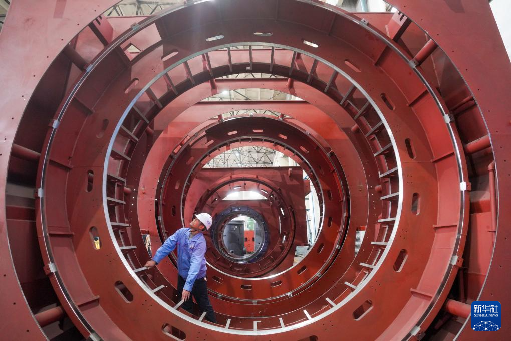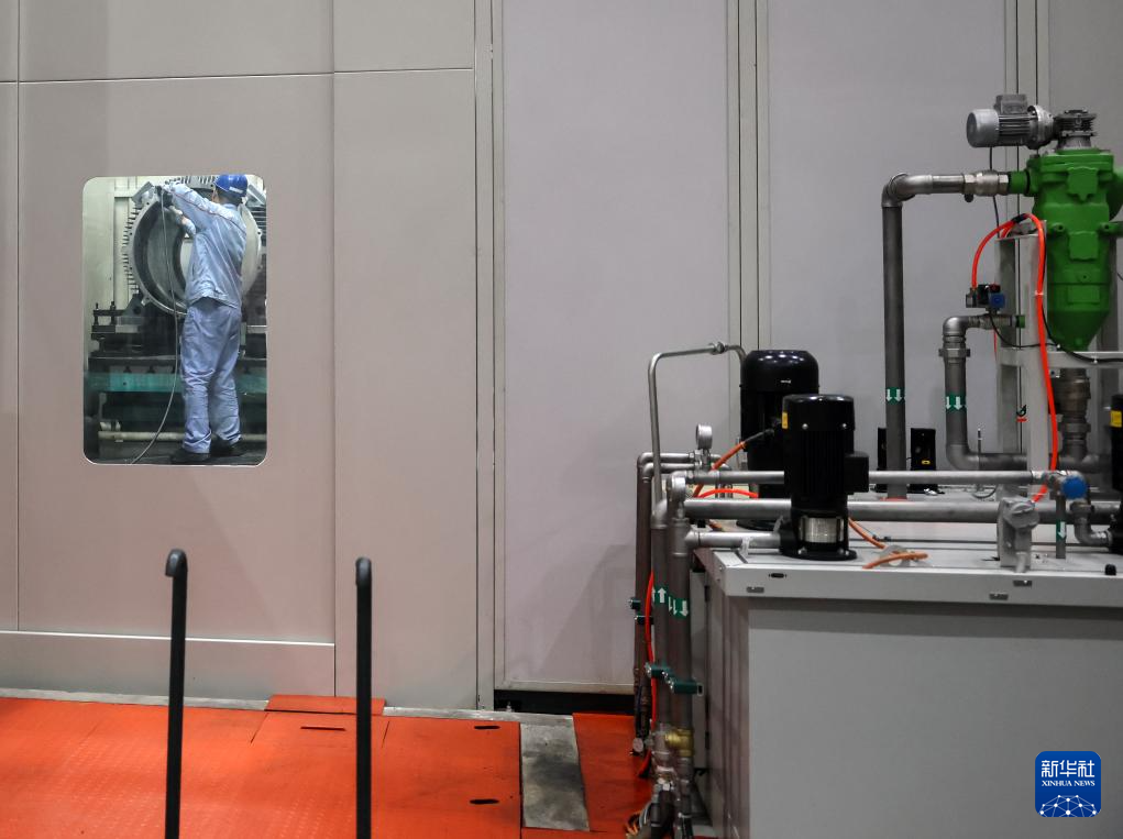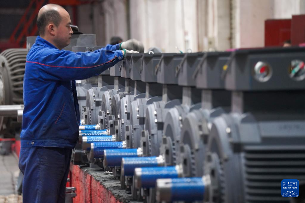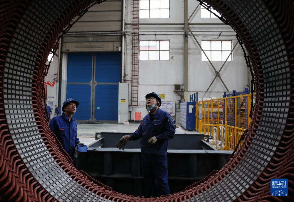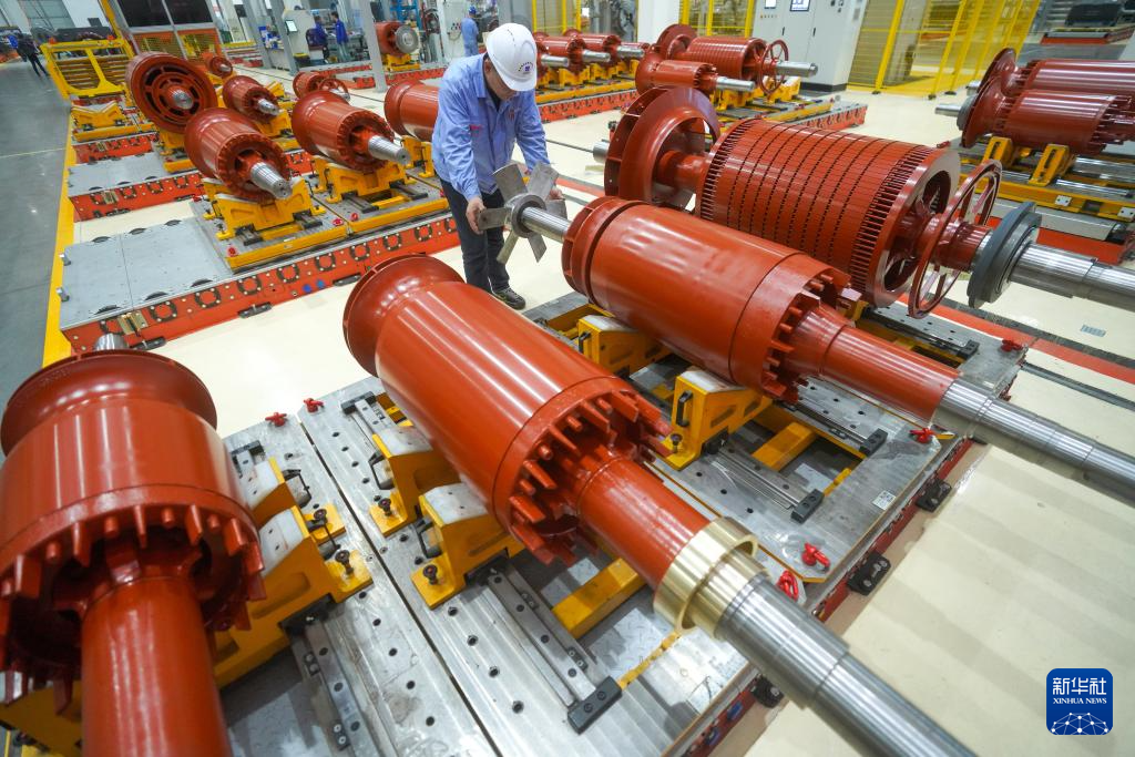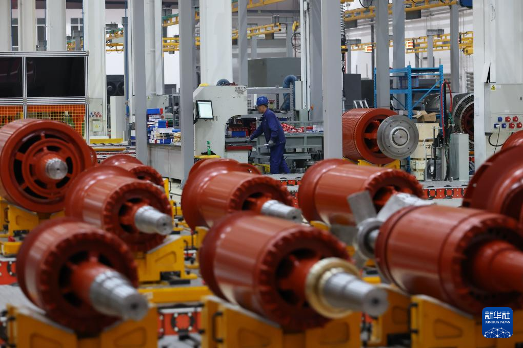 10月10日,工作人员在哈电集团佳木斯电机股份有限公司的车间里生产作业。该公司持续在数字化、智能化建设与新产品研发和科技创新上加大力度,全面推进企业数字化转型。