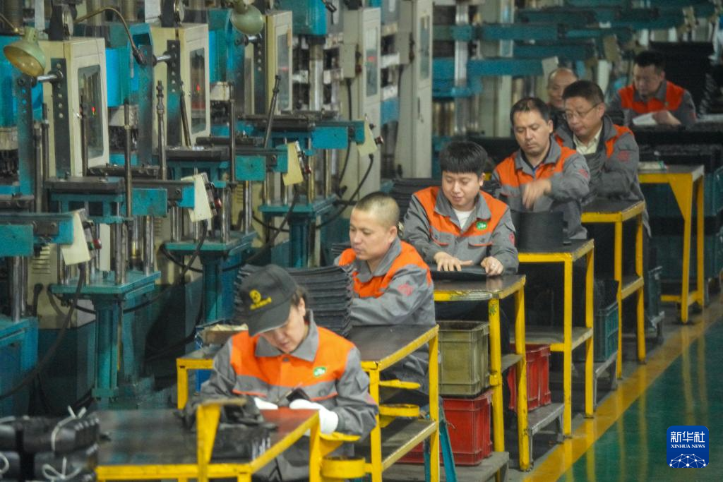 10月10日,工作人员在佳木斯市金兰马橡塑制品制造有限责任公司的车间里生产作业。该公司多年来致力于实现进口大马力收割机高端零部件国产化,通过不断技术创新研发,使主营产品质量跻身国际先进水平行列。
