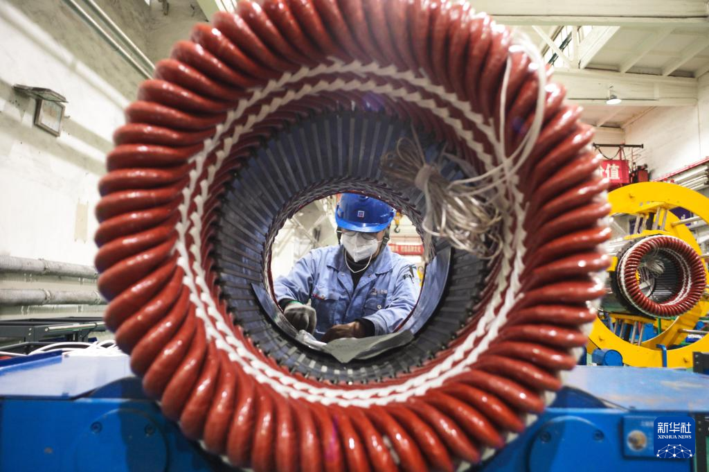 10月10日,哈电集团佳木斯电机股份有限公司工人在做接线工作。该公司持续在数字化、智能化建设与新产品研发和科技创新上加大力度,全面推进企业数字化转型。