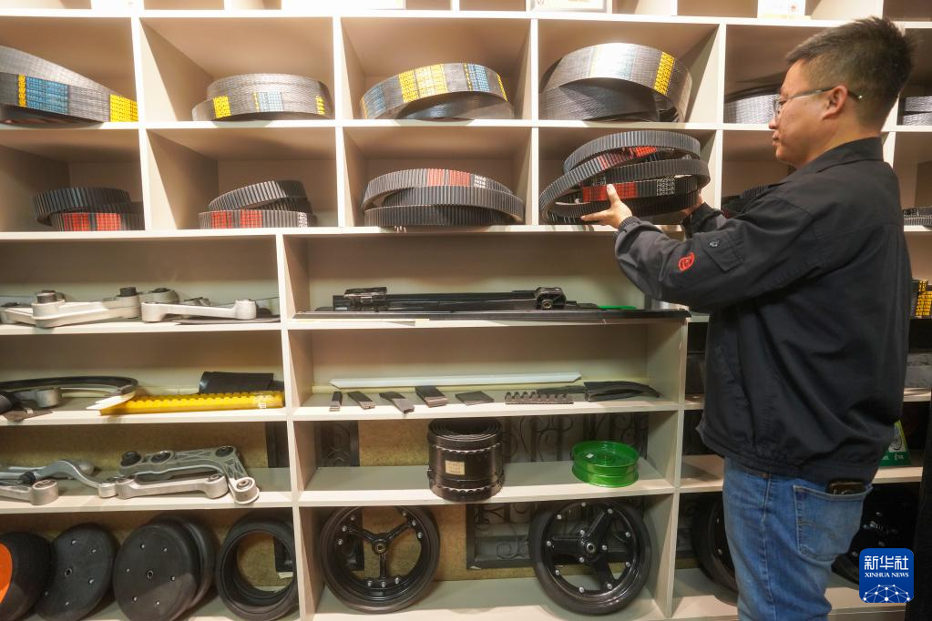 10月10日,工作人员在佳木斯市金兰马橡塑制品制造有限责任公司展示产品。该公司多年来致力于实现进口大马力收割机高端零部件国产化,通过不断的技术创新研发,使主营产品质量跻身国际先进水平行列。