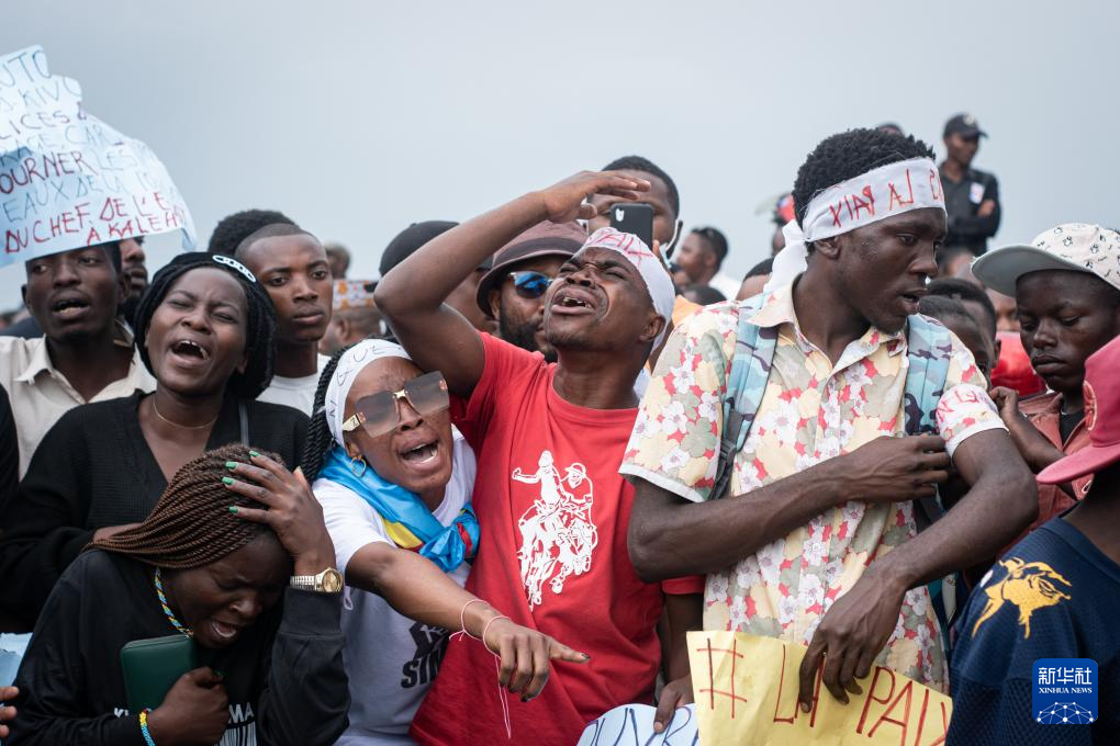 10月10日,在刚果(金)北基伍省首府戈马市,人们在基伍湖沉船事故罹难者葬礼上哀悼。