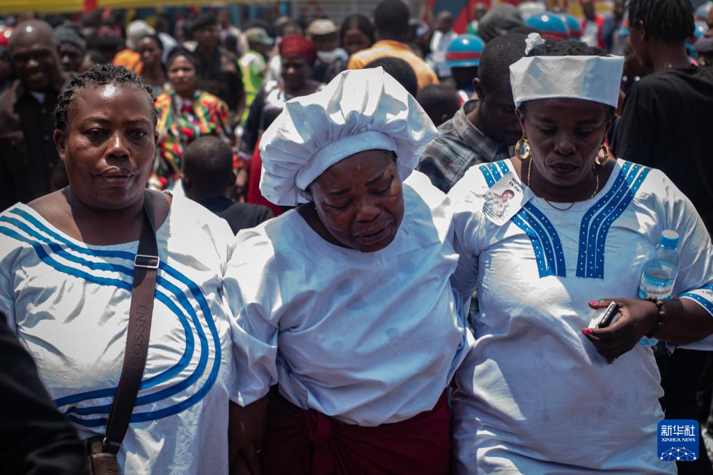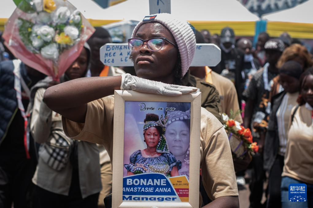 10月10日,在刚果(金)北基伍省首府戈马市,人们参加基伍湖沉船事故罹难者葬礼。