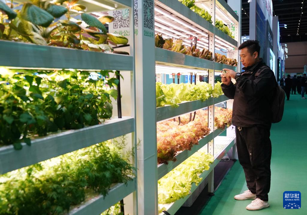 10月11日,参观者在世界农业科技博览会现场参观智慧植物工厂。