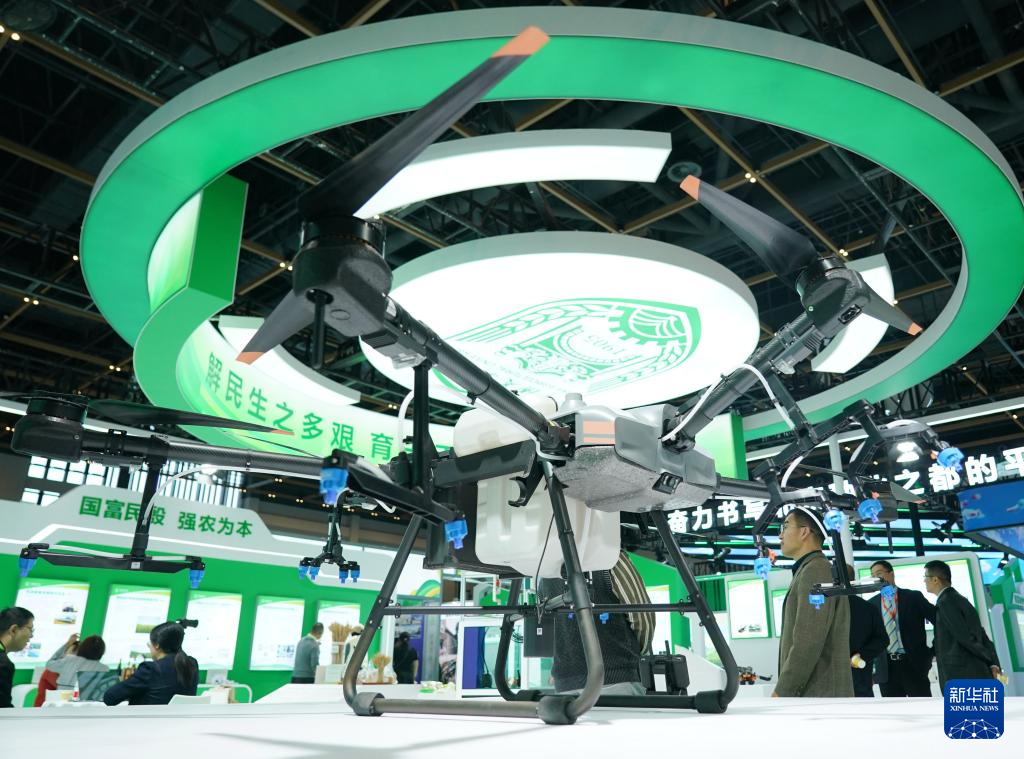 这是10月11日在世界农业科技博览会拍摄的一款六旋翼植保无人飞机。