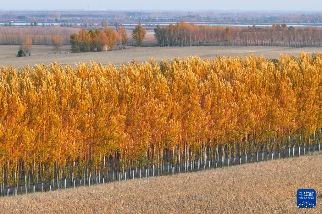 在肇东市五里明镇东升村拍摄的耕地和树木(无人机照片,10月11日摄)。