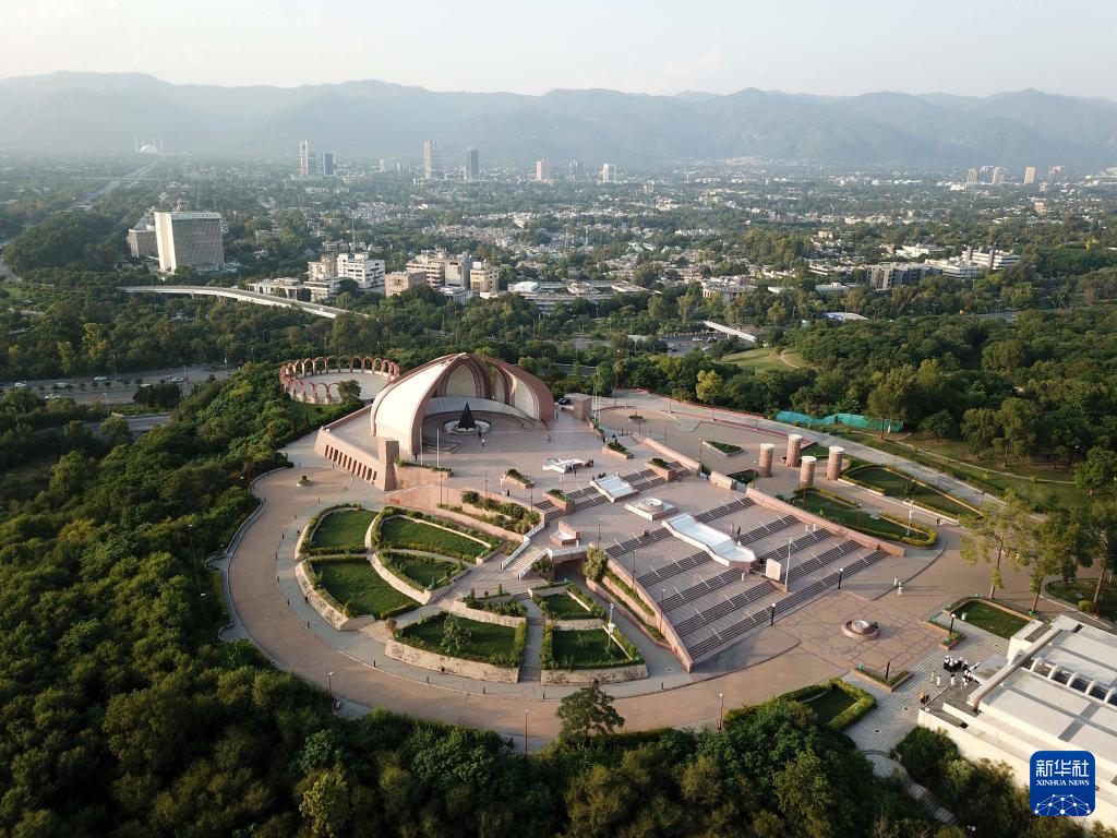 这是在巴基斯坦首都伊斯兰堡拍摄的标志性建筑——巴基斯坦纪念碑(无人机照片,10月8日摄)。
