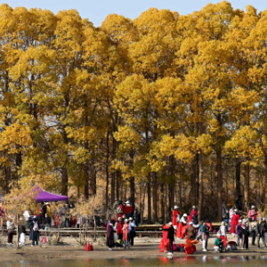 近日,内蒙古阿拉善盟额济纳旗的胡杨林进入最佳观赏期,吸引众多游客前来观赏游玩。10月1日至10月12日额济纳旗总旅游人次超过136万,同比增长9.83%。