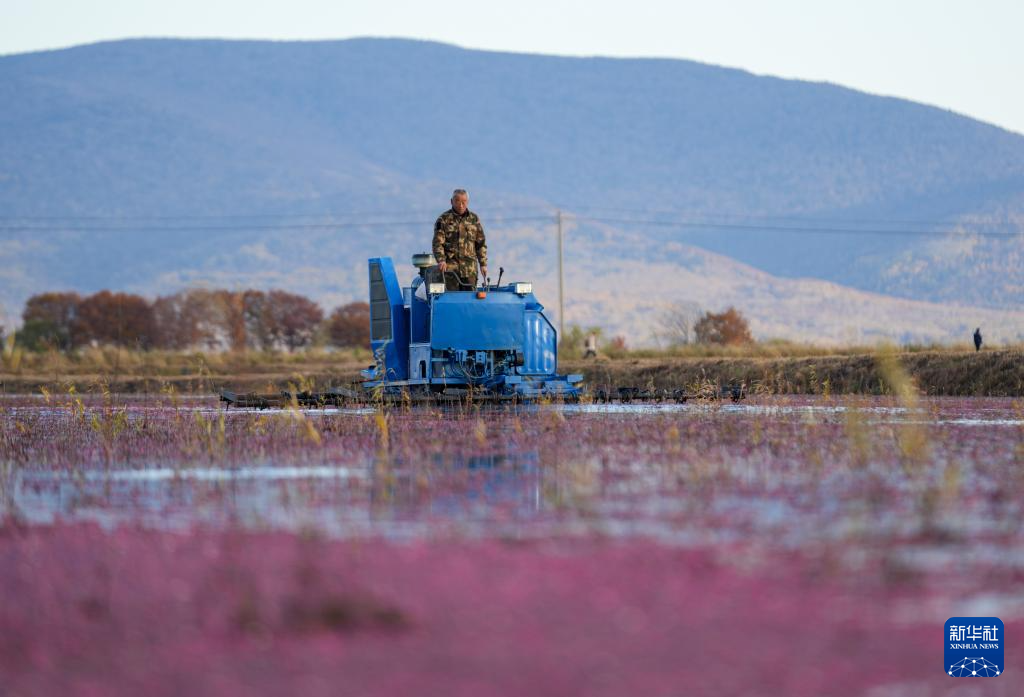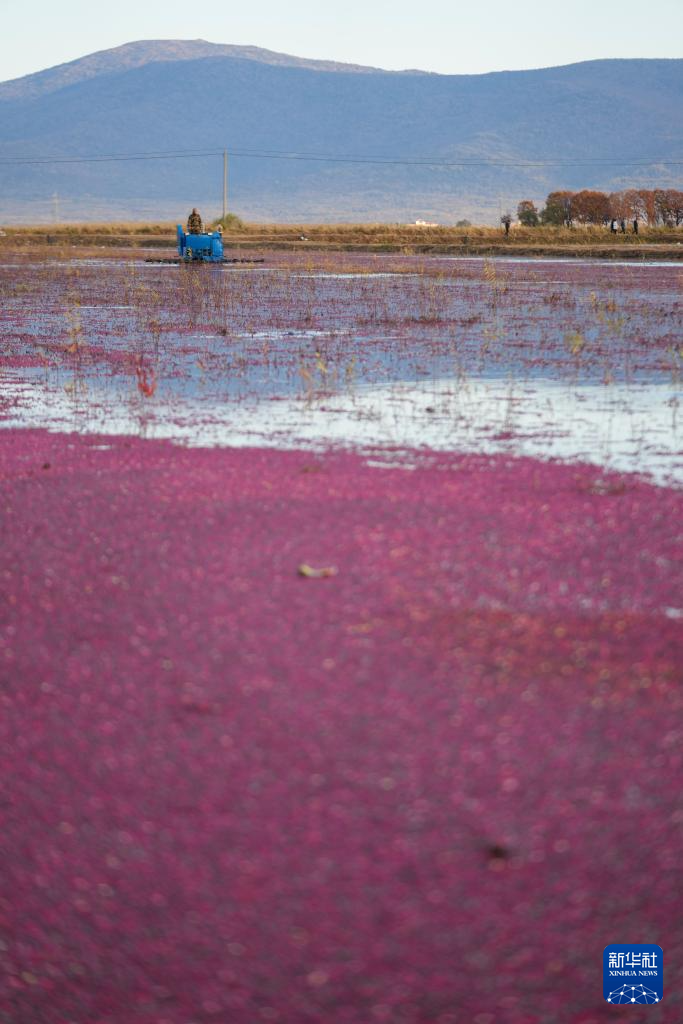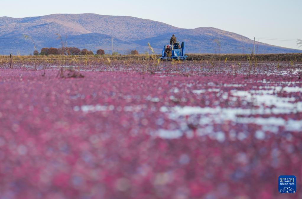 金秋时节,“华夏东极”黑龙江省抚远市的4200余亩蔓越莓迎来丰收季。近年来,抚远市聚力发展蔓越莓特色产业,打造了全国主要的蔓越莓规模化种植基地,并配套建有蔓越莓研发中心、冷链仓库、加工车间等全产业链区块,带动当地农户就业增收。