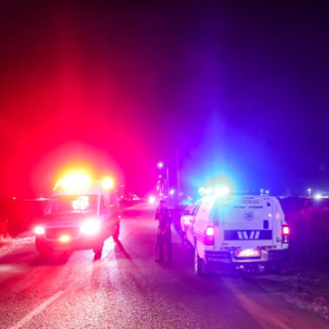 10月13日,在以色列北部宾亚米纳,安全人员的车辆行驶在遇袭军事基地附近。
