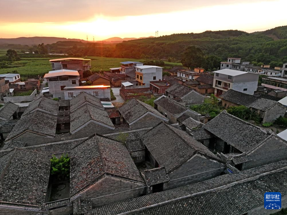这是落日余晖下的广西来宾市象州县罗秀镇纳禄村(10月9日摄,无人机照片)。