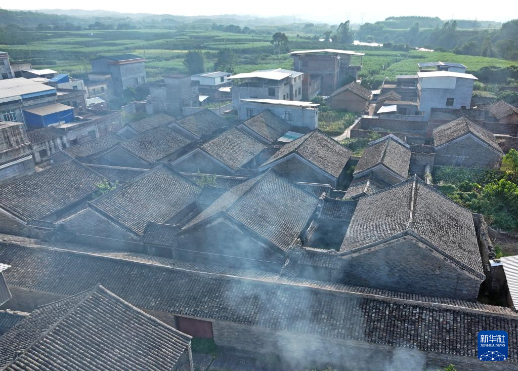 这是炊烟升腾的广西来宾市象州县罗秀镇纳禄村(10月9日摄,无人机照片)。
