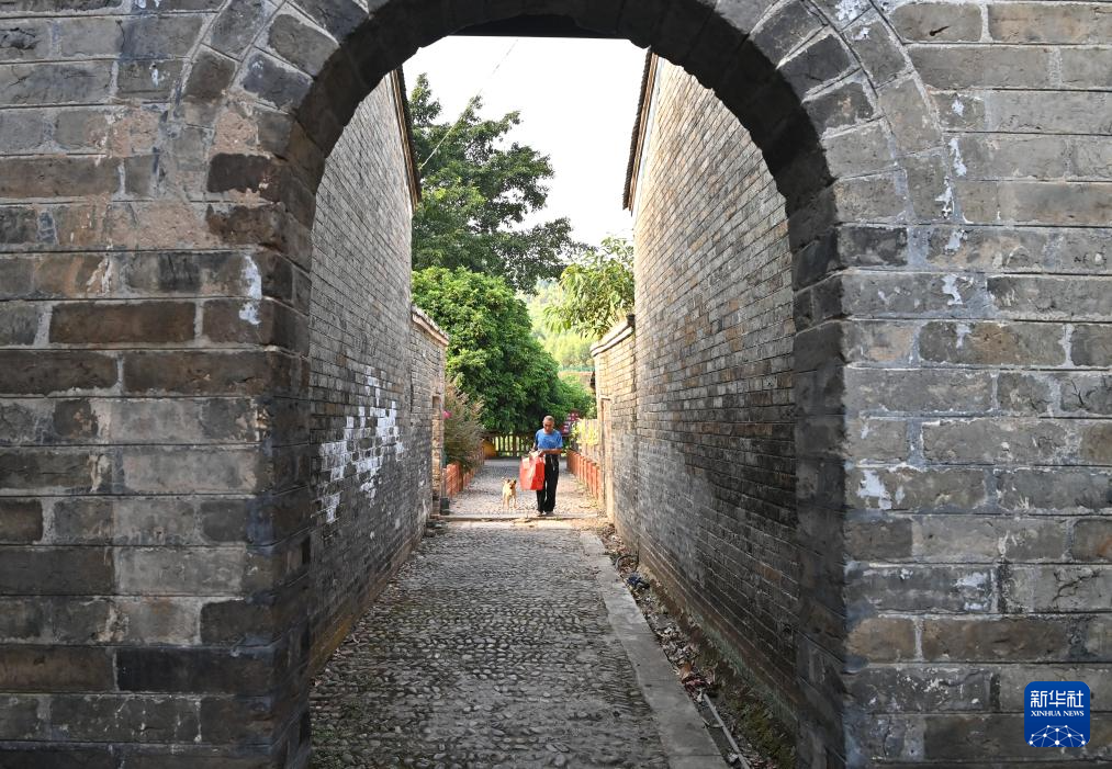 一名村民行走在广西来宾市象州县罗秀镇纳禄村的古巷中(10月9日摄)。