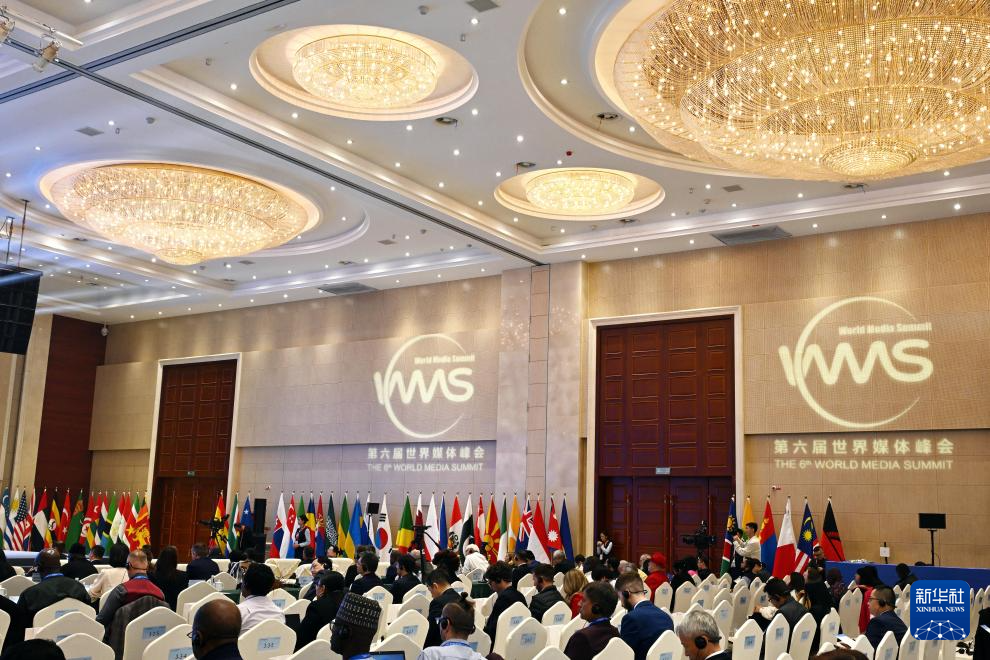 当日,以“人工智能与媒体变革”为主题的第六届世界媒体峰会举行全体会议。来自106个国家和地区的208家媒体、政府部门、国际组织等机构的500多名代表参加本次峰会。
