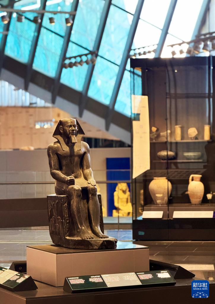 这是10月15日在埃及吉萨的大埃及博物馆展厅拍摄的展品。