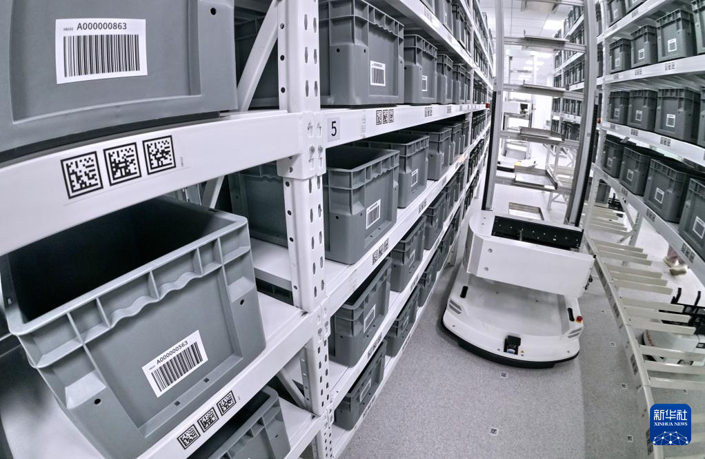 在北京安贞医院通州院区的智慧化药房,机器人在自动取药(10月14日摄)。