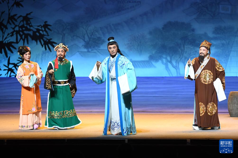 10月14日,演员在北京长安大戏院演出新编历史评剧《东垣大医》。