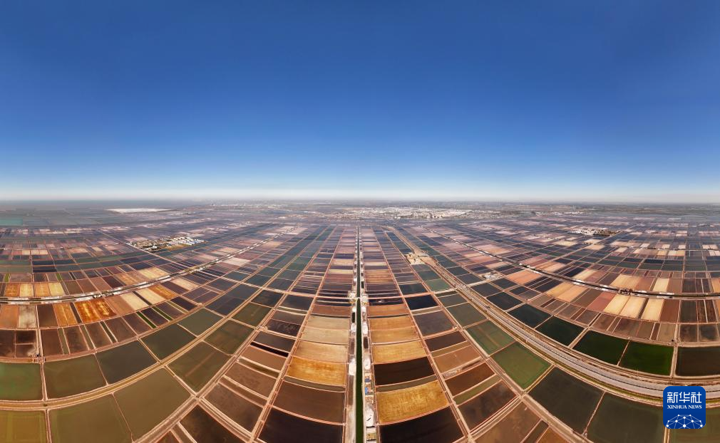 10月16日拍摄的河北省唐山市曹妃甸区南堡盐场(无人机全景照片)。