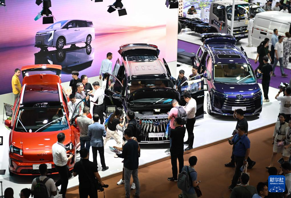 10月15日,广汽集团的新能源汽车展台吸引参观者。