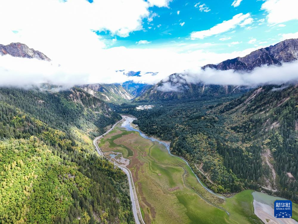 这是10月11日拍摄的正在建设中的九寨沟—绵阳高速公路(无人机照片)。九绵高速开通后,从成都至九寨沟县的时间将从原来的8小时缩短至4小时。