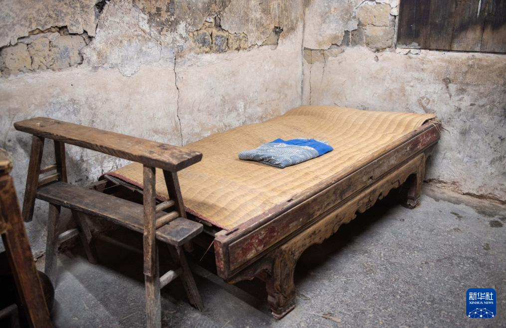 这是在湖南省郴州市汝城县沙洲瑶族村“半条被子”故事发生地旧址拍摄的三位女红军和村妇徐解秀同睡过的木床(2020年9月17日摄)。