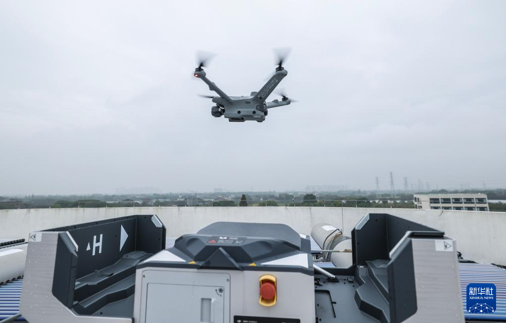 10月16日,在嘉兴市南湖区凤桥镇永红村的天旭航空培训基地屋顶,巡查无人机从机巢起飞,执行日常巡查任务。凤桥镇永红村利用无人机开展常态化农村人居环境、河道管理、耕地保护等日常巡查。