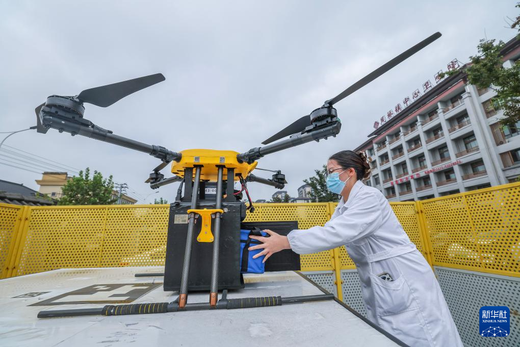 10月16日,装载了药品的无人机从嘉兴市南湖区凤桥镇中心卫生院起飞,按照预定飞行路线将药品送往下辖乡村。近期该卫生院启用了无人机运送医疗用品,为患者打开“天空通道”。