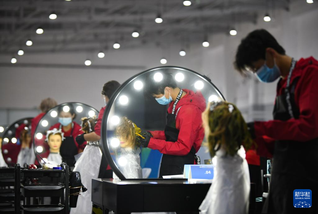 10月16日,参赛选手在陕西省2024职业技能大赛美发赛项比赛中。