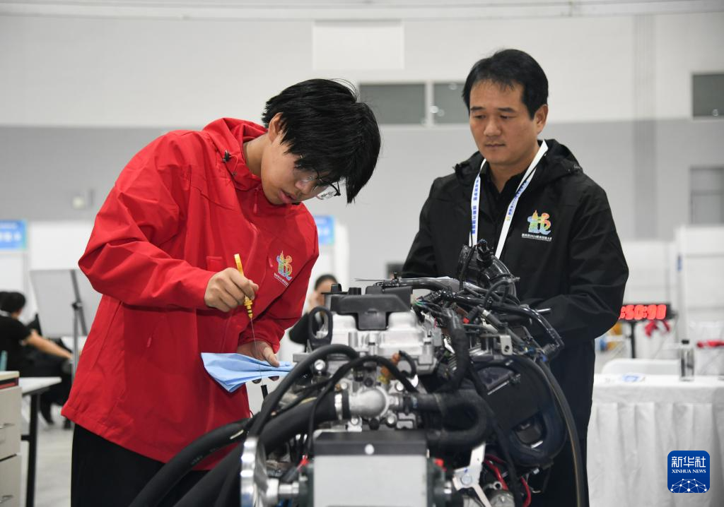 10月16日,参赛选手在陕西省2024职业技能大赛汽车技术赛项比赛中。