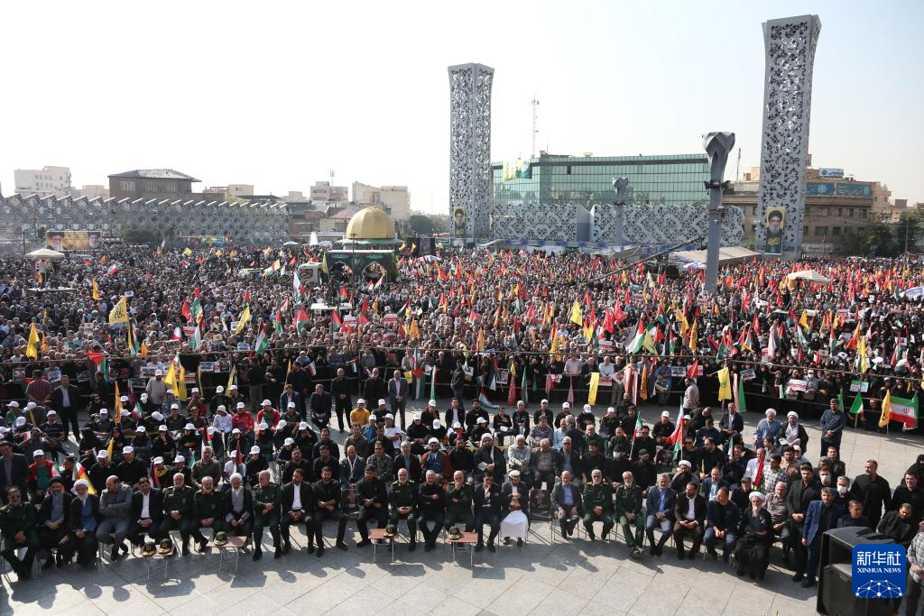 10月15日,在伊朗首都德黑兰,人们参加为伊朗伊斯兰革命卫队高级指挥官阿巴斯·尼尔福鲁尚举办的葬礼。新华社记者 沙达提 摄pagebreak
