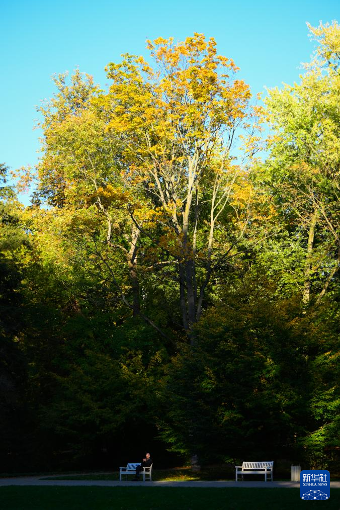 10月16日,一名男子在波兰首都华沙的瓦津基公园内享受秋日休闲时光。